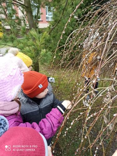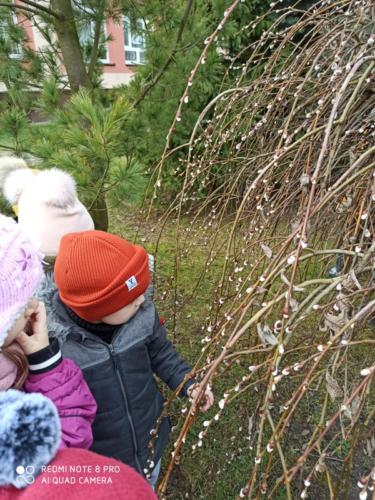 Dzieci z grupy Krasnoludki podczas codziennych spacerów lub zabaw na świeżym powietrzu, mają możliwość poszukiwać oznak lub zjawisk odpowiadających danej porze roku. Udało im się już odnaleźć pierwsze oznaki przedwiośnia, a mianowicie bazie kotki.
