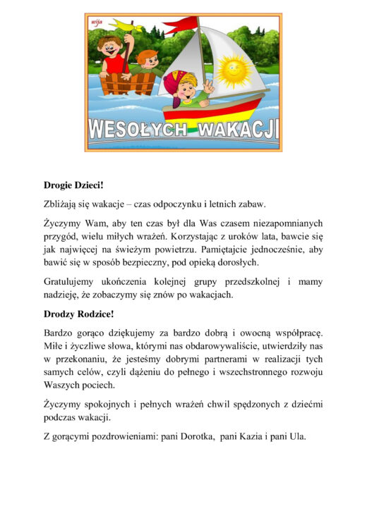 Wyruszamy na wakacje – piątek 26. 06