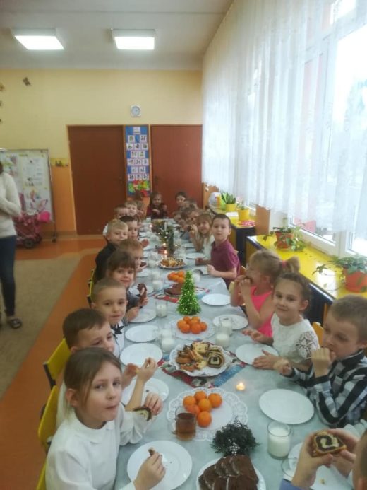 Dni przedświąteczne spędzamy poznając i podtrzymując tradycje…pieczemy pierniczki, ubieramy choinkę, wykonujemy kartki świąteczne, śpiewamy kolędy…mieliśmy też mini wigilię w grupie, opłatek i życzenia…coraz bliżej święta. Życzymy wszystkim Wesołych Świąt!