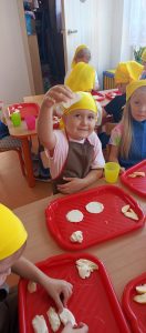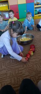 26 września w Pszczółkach obchodziliśmy dzień jabłka. Ten wyjątkowy dzień dostarczył dzieciom wiele radości. Podczas wspólnych zabaw przedszkolaki poznały różne odmiany jabłek – porównywały ich kolory, kształty i wielkości. Rozmawialiśmy o tym, dlaczego warto jeść owoce i jak wpływają one na nasze zdrowie. Na koniec upiekliśmy pyszne ciasteczka jabłkowe a zapach unosił się na całe przedszkole:)