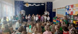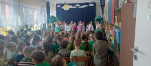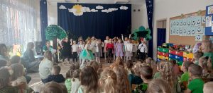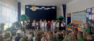 Szczególnym punktem dnia było przedstawienie przygotowane przez grupę „Żabki” pt. „Gdzie jesteś, Wiosno?”. Mali artyści z ogromnym zaangażowaniem wcielili się w swoje role. Dzieci pięknie recytowały wiersze, śpiewały piosenki i tańczyły, wprowadzając widzów w prawdziwie wiosenny nastrój.