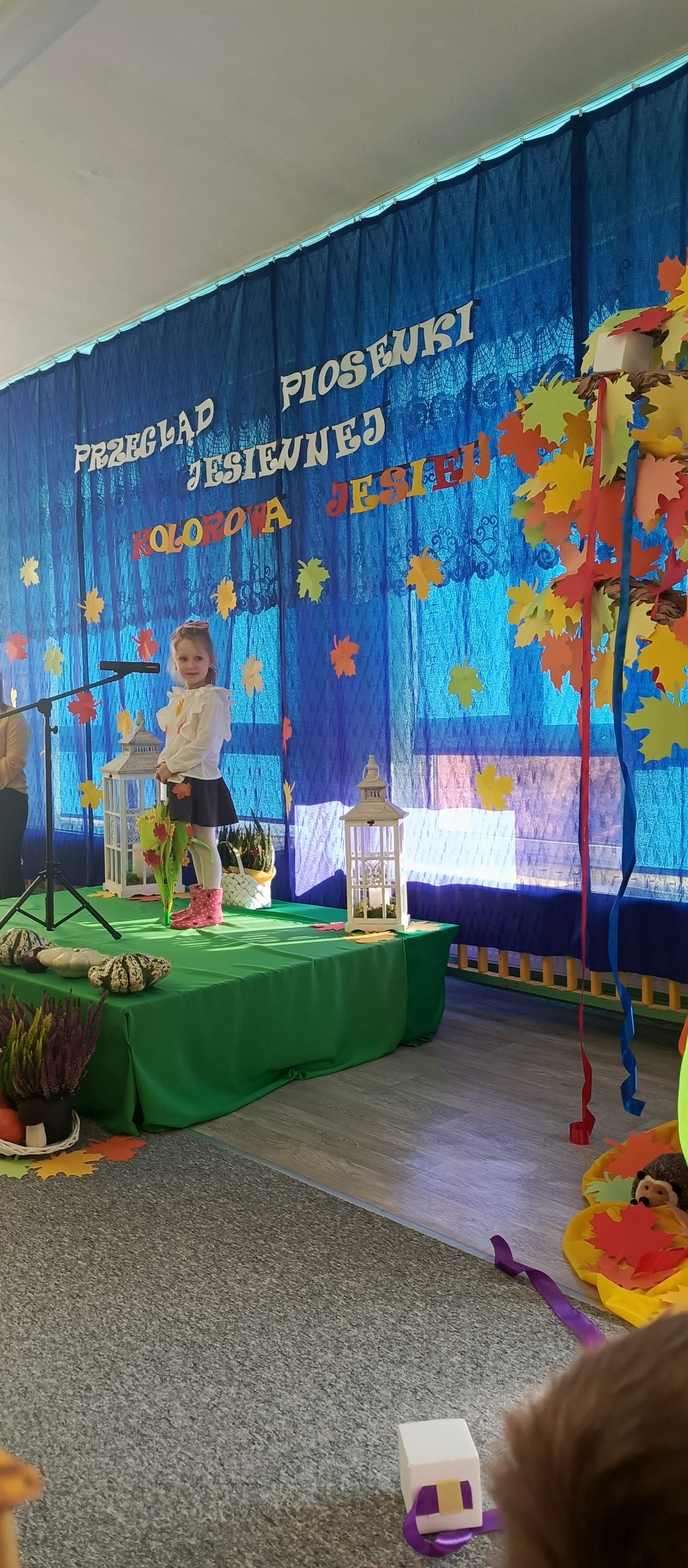 30 października 2025 roku Przedszkolu integracyjnym nr 1 odbył się jak co roku Przegląd Piosenki Jesiennej – ” Kolorowa Jesień”. Nasze przedszkole reprezentowała Małgorzata Sulej z grupy Pszczółki, która zaprezentowała utwór „Jesienne spory”.