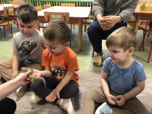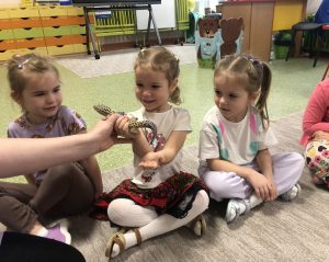 17 listopada w naszym przedszkolu gościliśmy Panią Anię wraz ze zwierzętami o niecodziennym wyglądzie, miłym dotyku, różnorodnej kolorystyce. Dzieci miały okazję na bezpośredni kontakt ze zwierzętami, naukę poprzez zabawę, poznały wiele ciekawostek i informacji o tych zwierzętach.