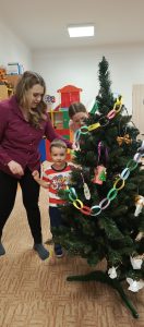 Święta Bożego Narodzenia to szczególny czas. I właśnie 9 grudnia w naszej grupie zagościła świąteczna atmosfera, zostały zorganizowane warsztaty rodzicami. Nasze spotkanie umilił krótki program artystyczny w wykonaniu dzieci a następnie przedszkolaki wspólnie ze swoimi rodzicami wykonywały ozdoby choinkowe, wykazując przy tym wiele pomysłowości i kreatywności. Po wykonaniu ozdób dzieci wspólnie z rodzicami ozdobiły choinkę w naszej sali, która dzięki temu jest piękna i wyjątkowa. Bardzo dziękujemy rodzicom za obecność, zaangażowanie i poświęcony czas.