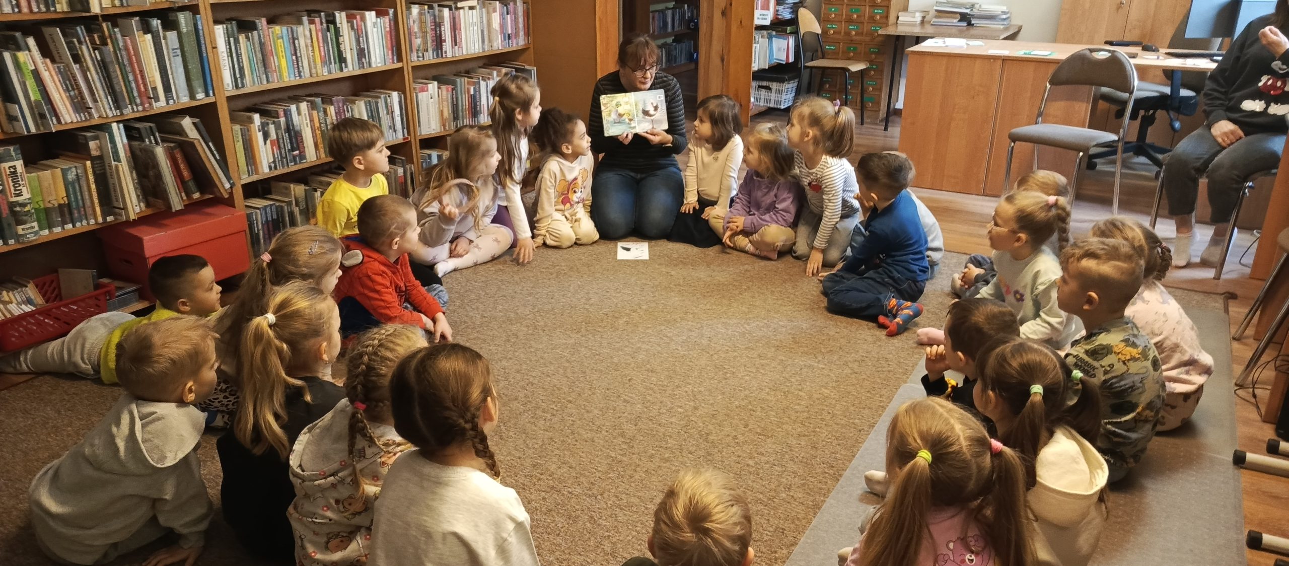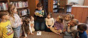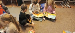 Podczas zajęć dzieci wysłuchały ciekawych opowiadań o wiośnie, rozmawiały o zmianach zachodzących w naturze oraz dzieliły się swoimi spostrzeżeniami. Warsztaty były doskonałą okazją do rozwijania wyobraźni, kreatywności oraz zainteresowania książką i czytelnictwem.