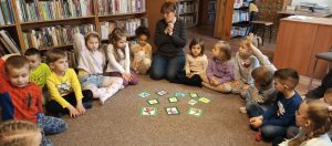 Dzieci z grupy Pszczółki wzięły udział w wiosennych warsztatach zorganizowanych w bibliotece. Spotkanie miało radosny i twórczy charakter, a jego tematem przewodnim była budząca się do życia przyroda.